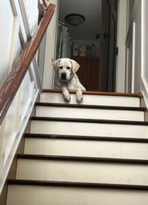 - She quickly picked up going up and down stairs. She went up and was afraid to come back down. She then went up and down on her own. Now she goes up and down like a pro. We have never had a dog learn this fast!