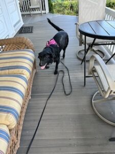 She’s very curious about everything and is enjoying exploring. I’ve been walking her around the property this morning. We did see a couple of other dogs, and she did react, pulling towards them with curiosity. Since I don’t know her too well yet, it’s hard to tell if she is just excited to see them or if she doesn’t like them. We’ll take it slow until we know more about her.